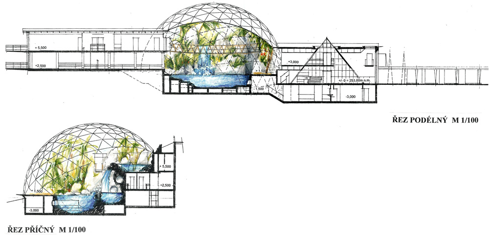 Postupná projekce a realizace vybavení areálu restauracemi, squashovými kurty a ubytováním v chatách.